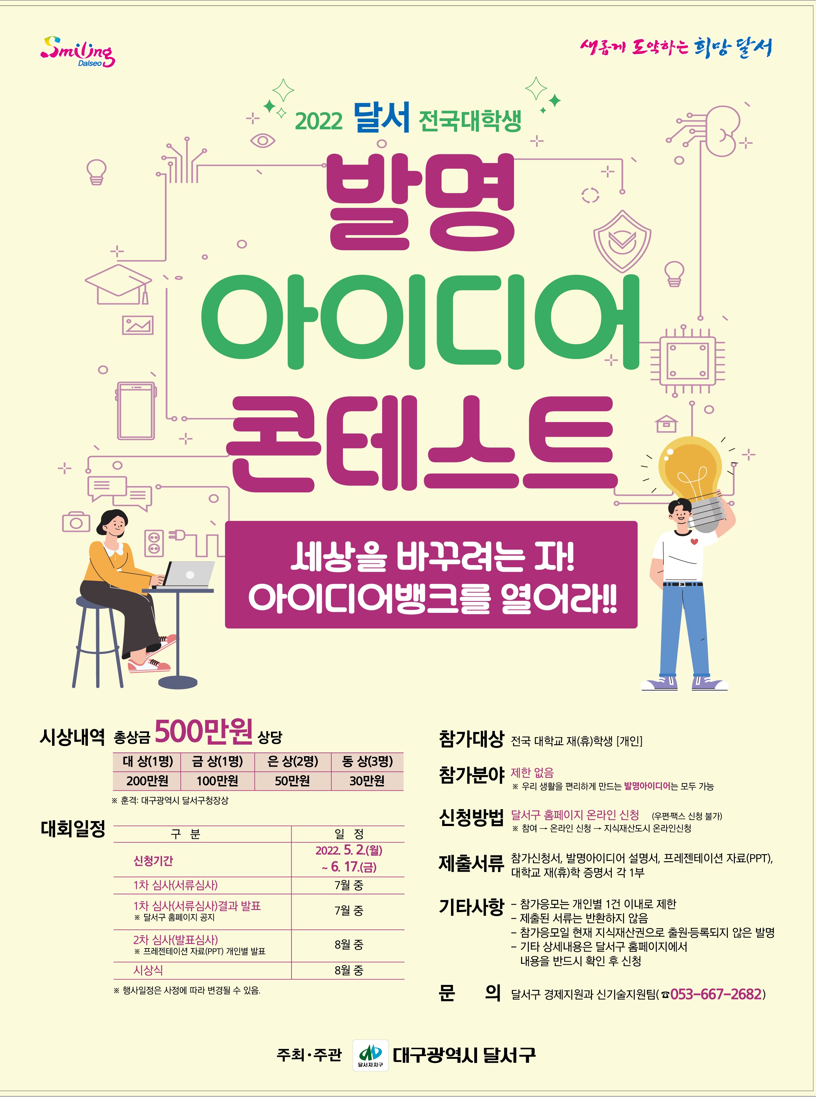 「2022 달서 전국대학생 발명아이디어 콘테스트」 참가자 모집