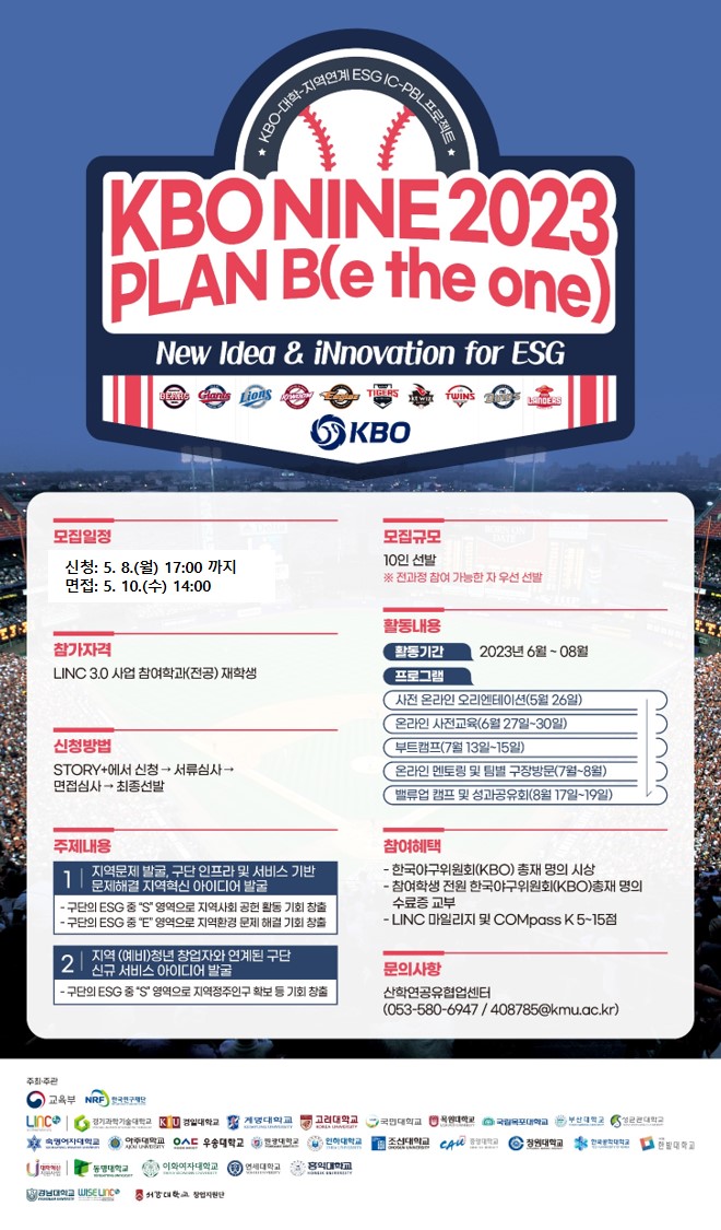 | [인재양성] 「KBO 나인(NINE) 시즌 2023」 참가자 모집(~5/8 17:00) | ||