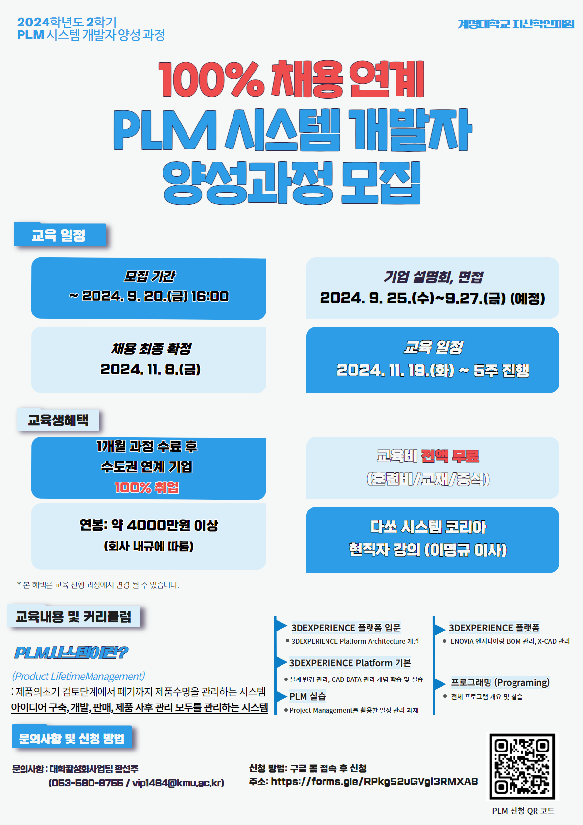 | [인재양성] 100% 취업연계_PLM 시스템 개발자 양성 과정 참여생 모집 | ||