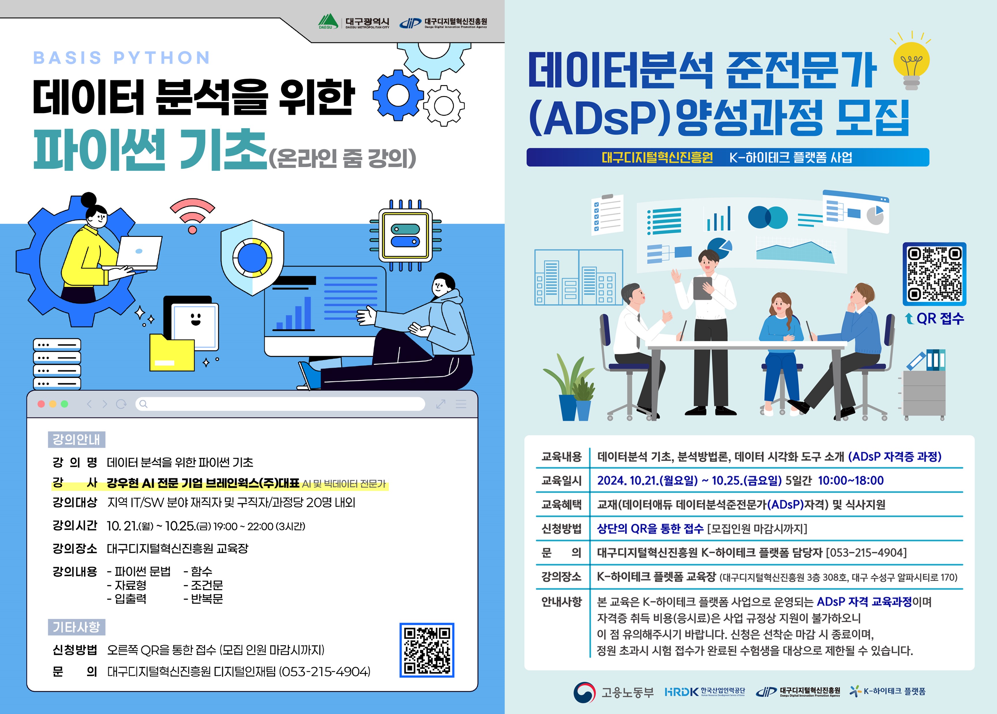 | [인재양성] 대구디지털혁신진흥원 IT/SW분야 교육 안내(파이썬 기초, ADsP 자격증 과정) | ||