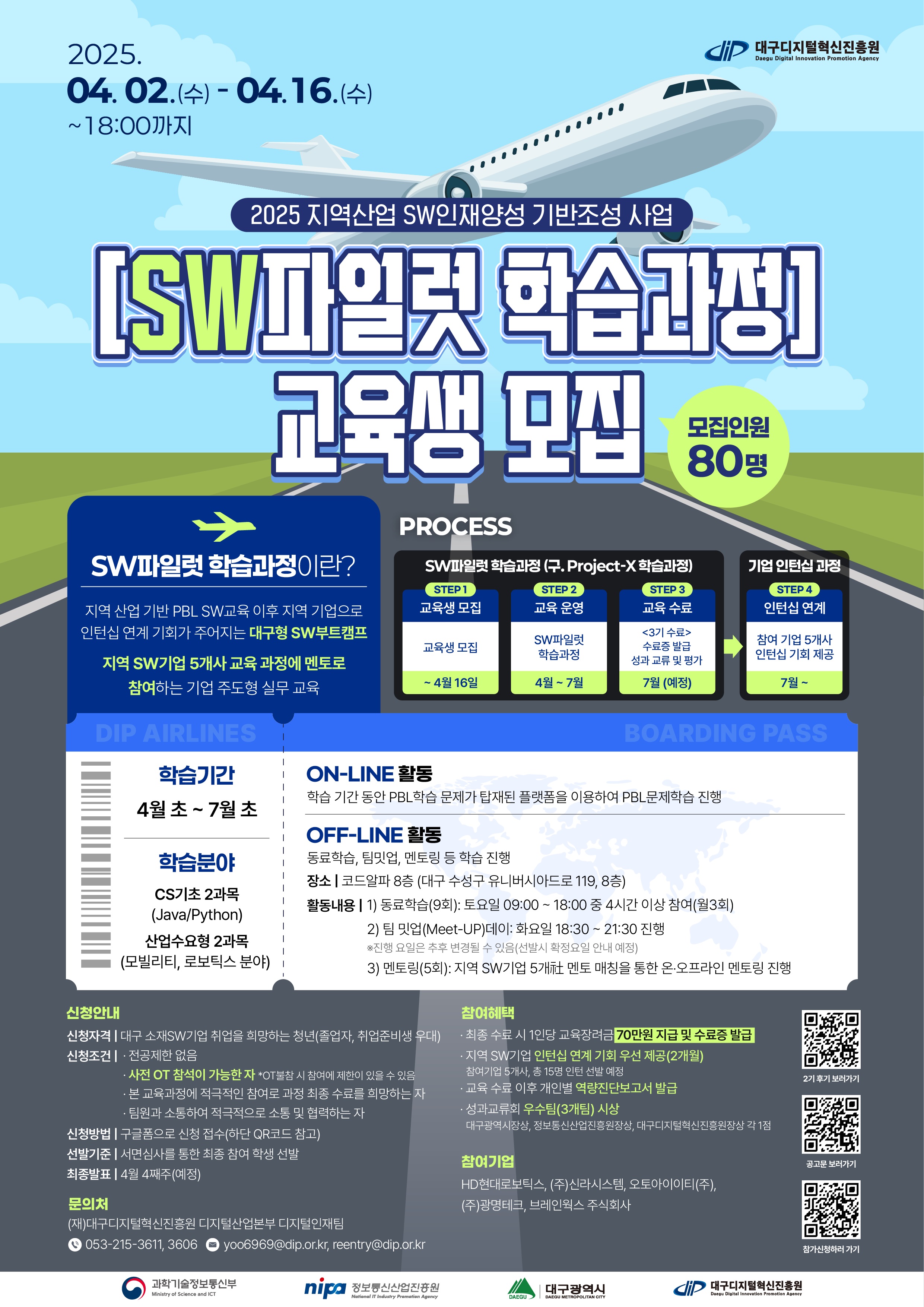 | [인재양성] [2025년 지역산업 SW인재양성 기반조성 사업] 「SW파일럿 학습과정」 참여학생 모집 | ||